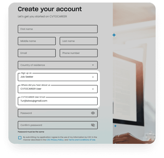 Your earnings are captured when a new user successfully registers on CVtoCAREER as a ‘Job Seeker’ using your Email address during their onboarding.